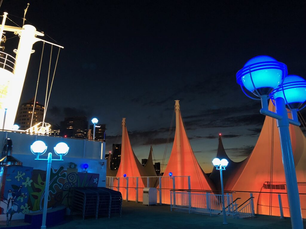 Cap off your trip with a visit to Canada Place at night. It’s a beautiful sight with the sails lit up, and offers a great view of the harbor.